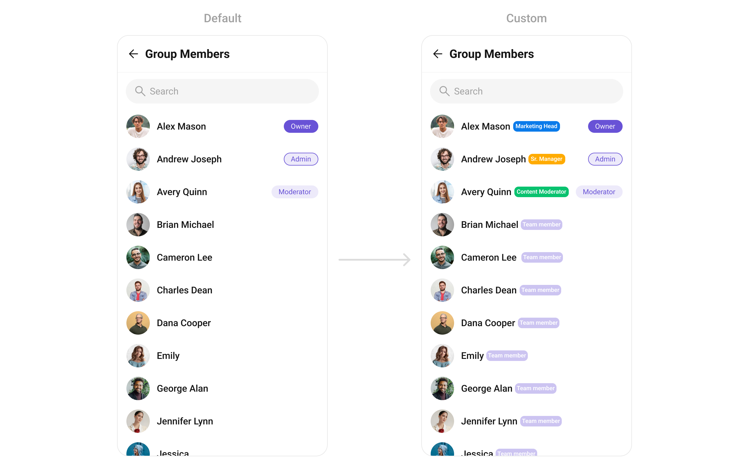 Q: Can I show a custom badge for each member’s role?