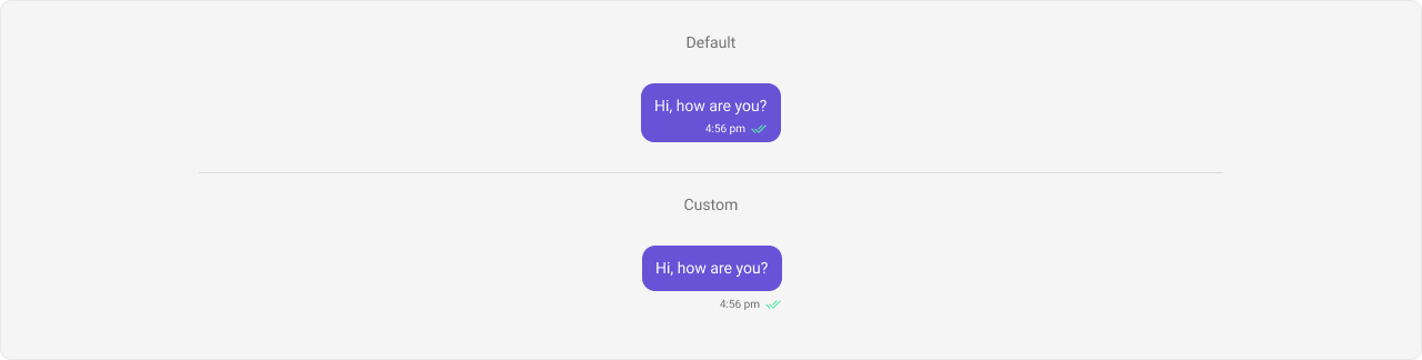 statusInfoViewmethod allows you to assign a custom status info view to the Message Bubble. By default, it displays the receipt and timestamp. -